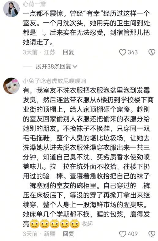 笔者寄语:这看起来,就是不讲卫生的故事。背后反映的却是家庭教育的缺失,到了大学之后,这些学生会接触到很多,和自己生活习惯不一样的同学。